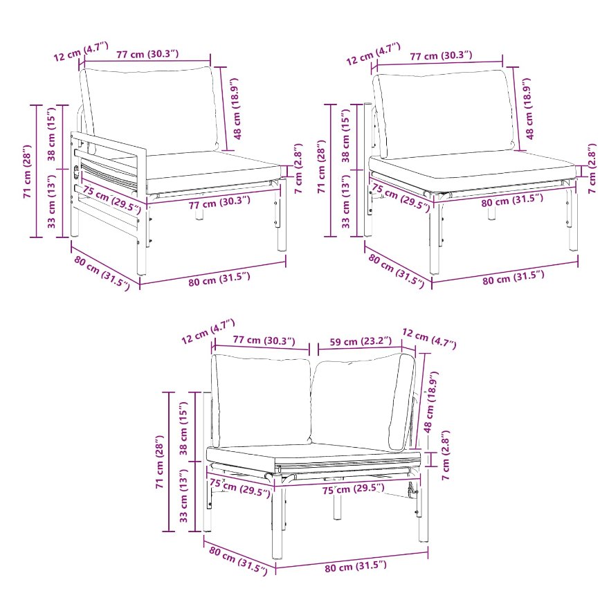 • Mukana tulevat tyynyt: Jokaisessa osassa on mukavat tyynyt, jotka tekevät istumisesta mukavaa. Ne on suunniteltu kestäviksi, ja irrotettavat päälliset helpottavat puhdistamista, jotta ne pysyvät raikkaina.