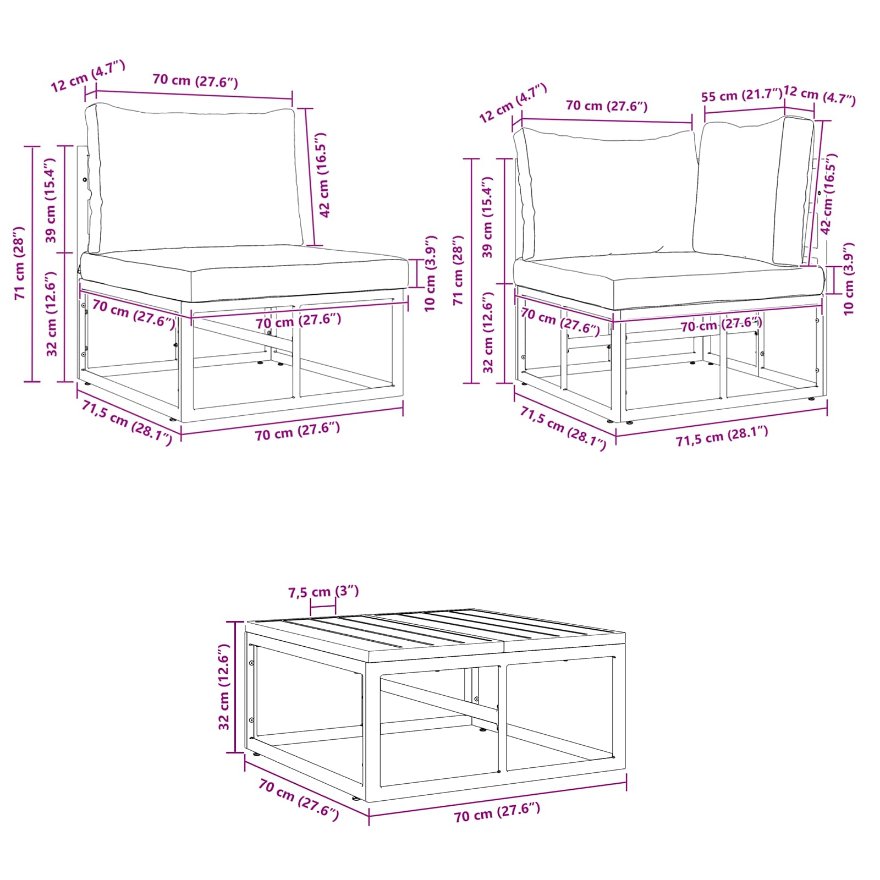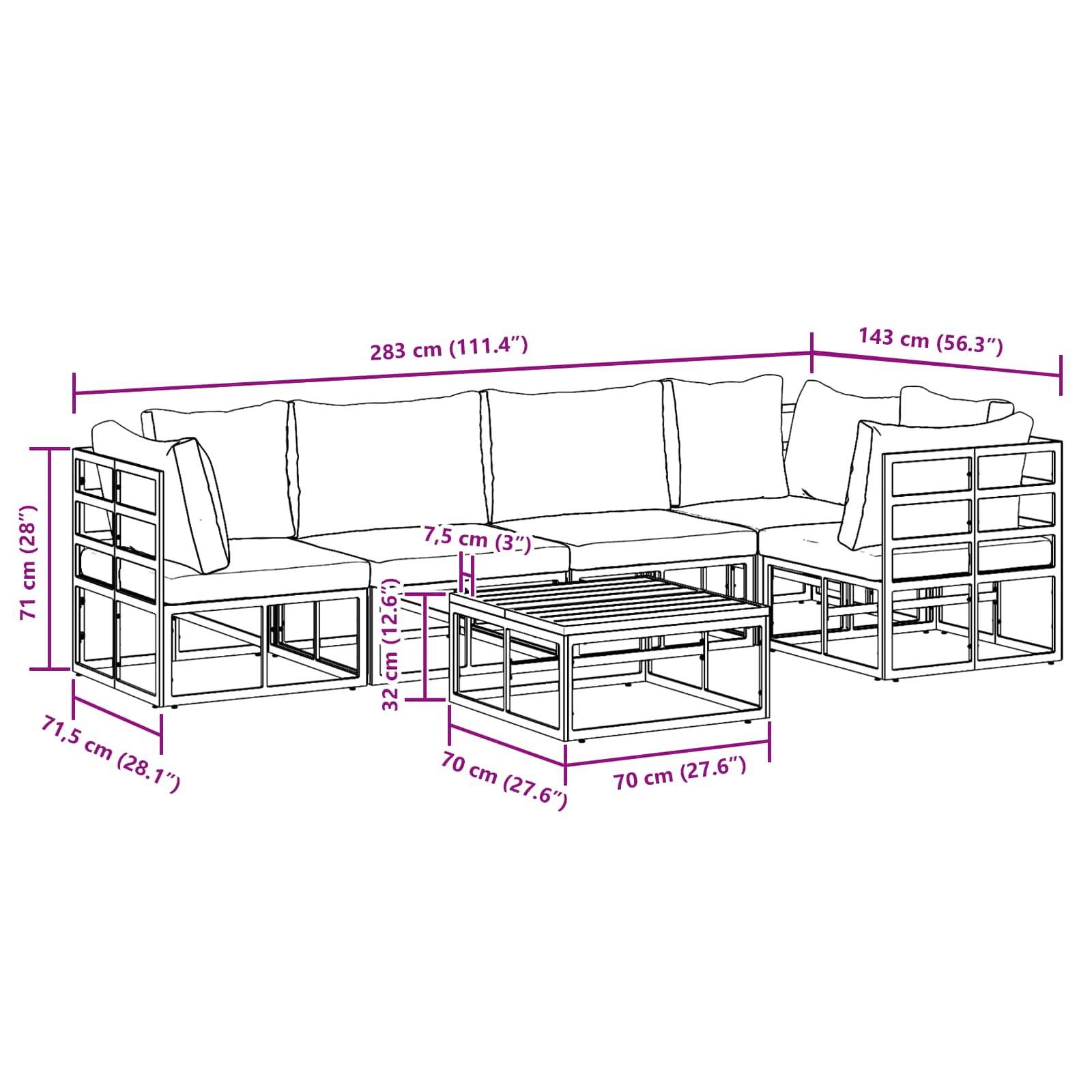 Puutarhasohva Setti 6 pcs Musta 70 x 70 x 32 cm Alumiini