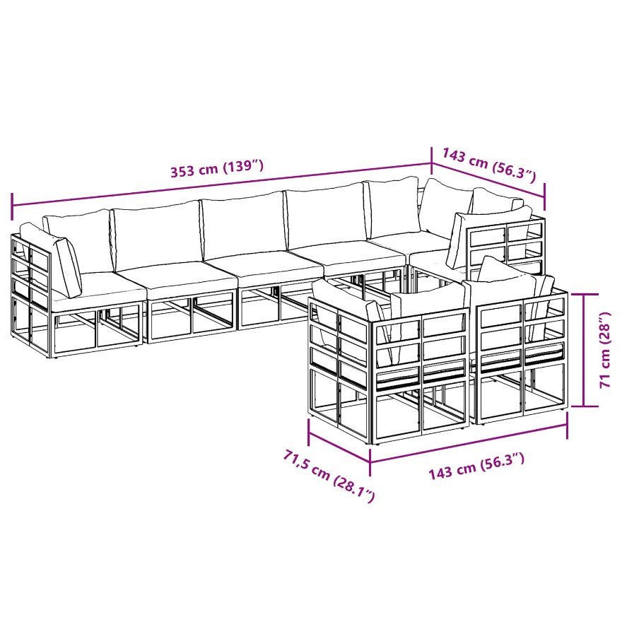 Puutarhasohva Setti tyynyllä 8 pcs Musta Alumiini