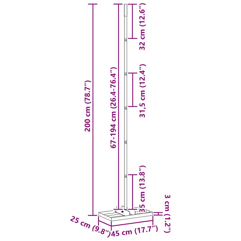 • Yleiset mitat: 45 x 25 x 200 cm (P x L x K)