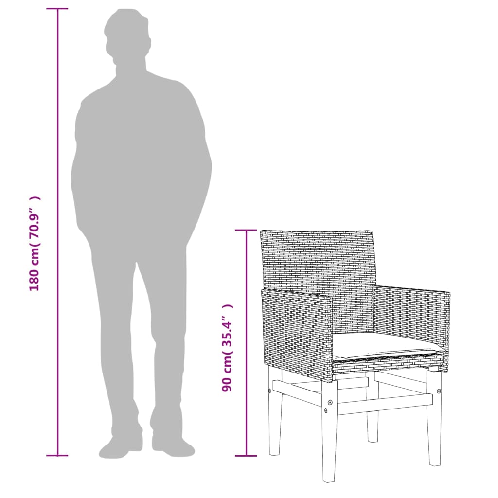 Puutarhatuolit tyynyillä 2 kpl musta polyrottinki ja täysi puu
