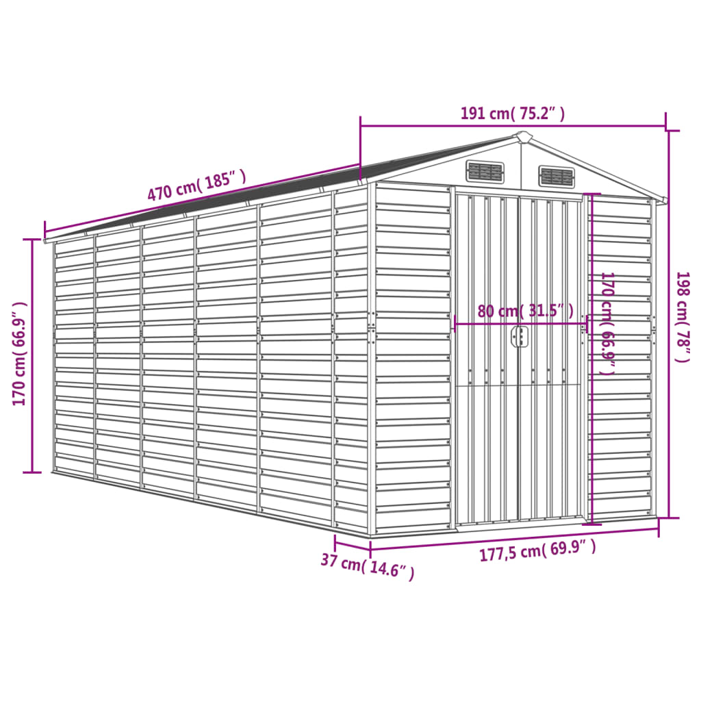 Puutarhavaja antrasiitti 191x470x198 cm galvanoitu teräs