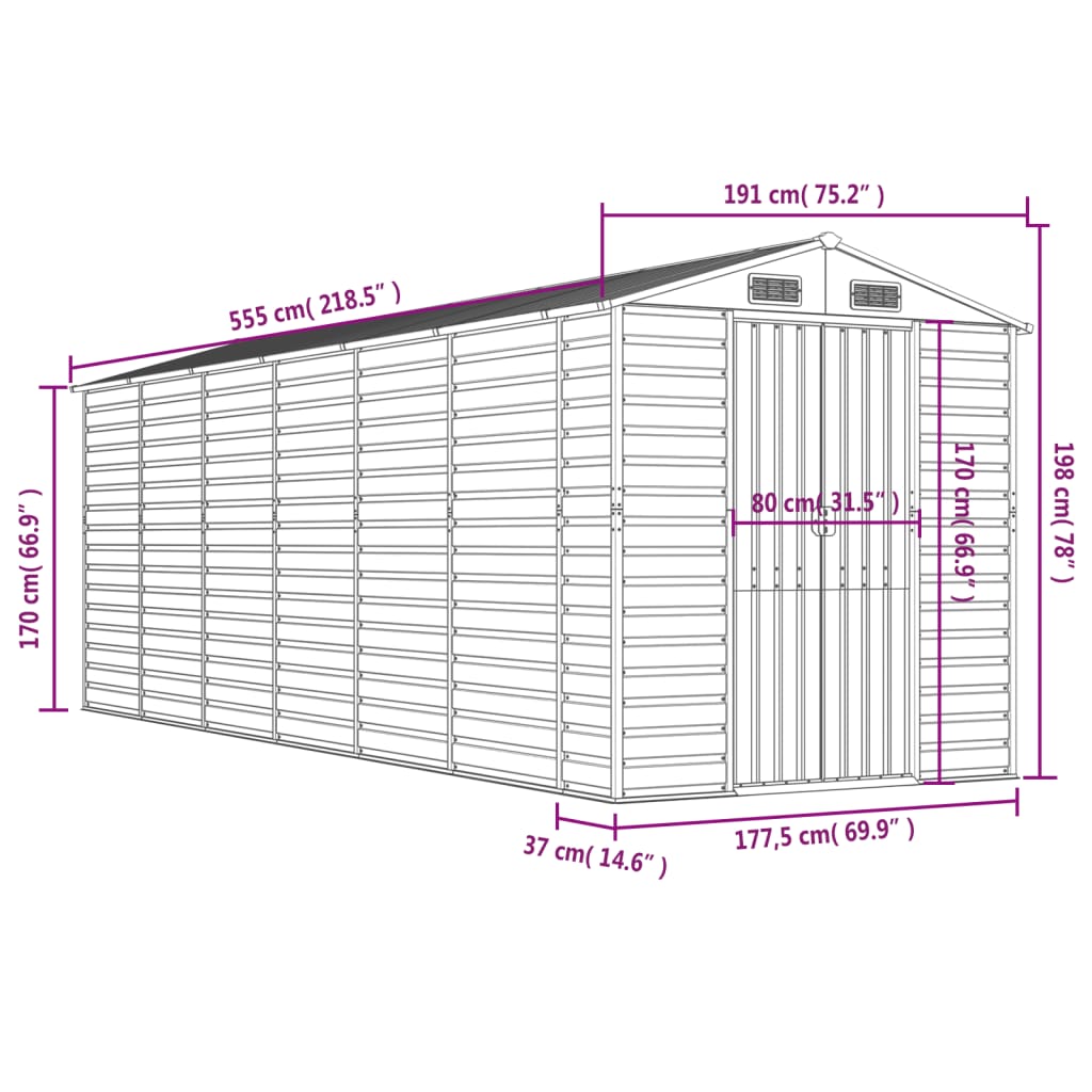 Puutarhavaja antrasiitti 191x555x198 cm galvanoitu teräs