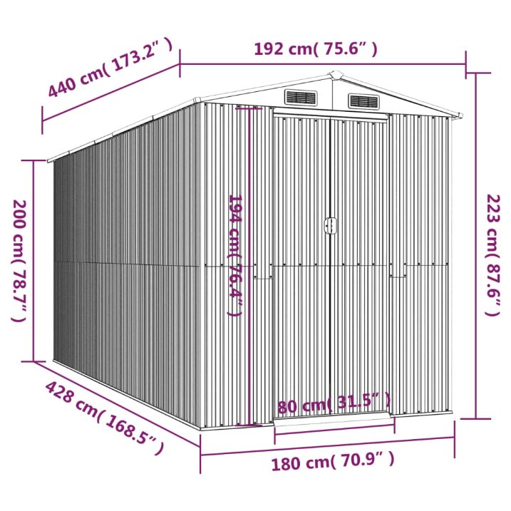 Puutarhavaja antrasiitti 192x440x223 cm galvanoitu teräs