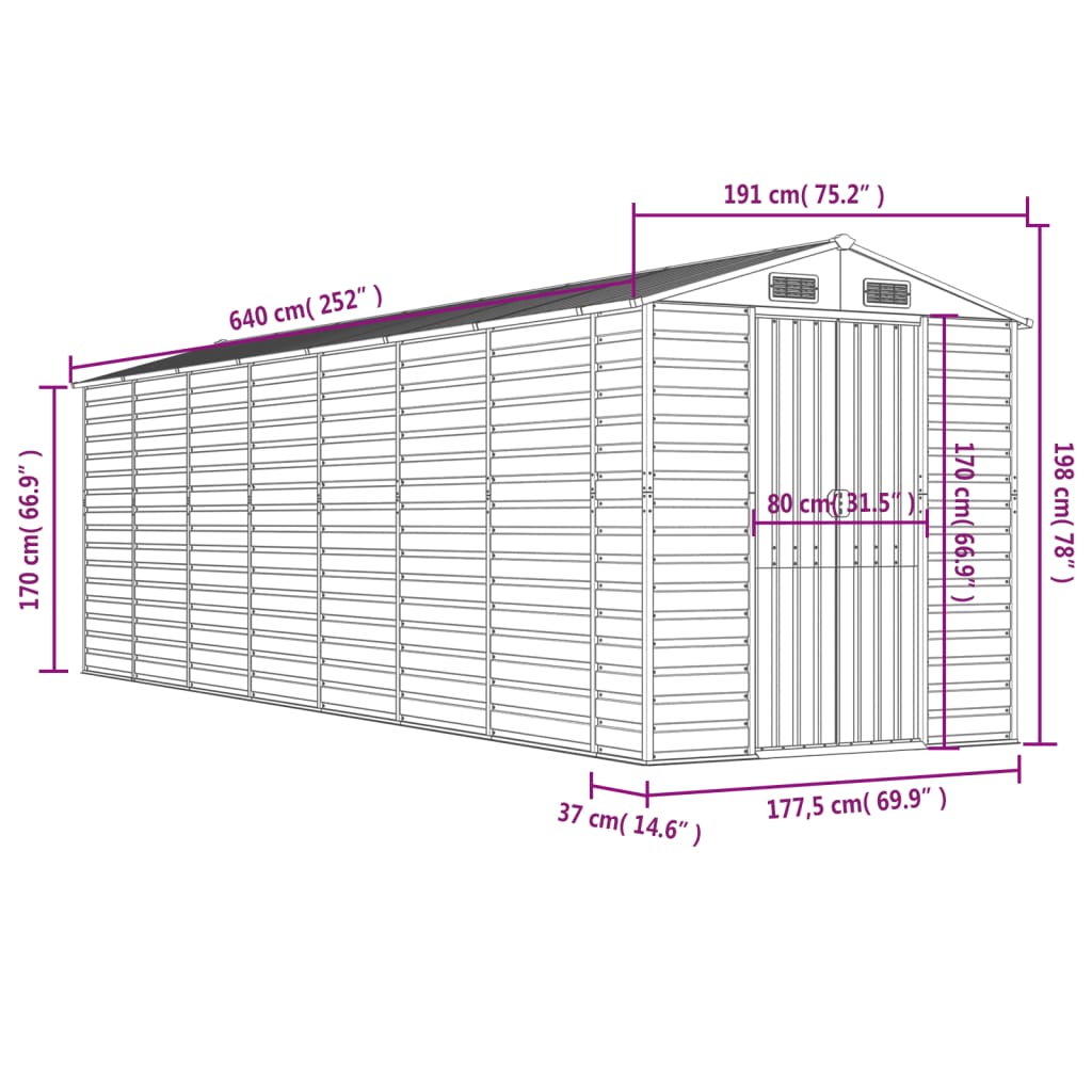 Puutarhavaja vaaleanharmaa 191x640x198 cm galvanoitu teräs