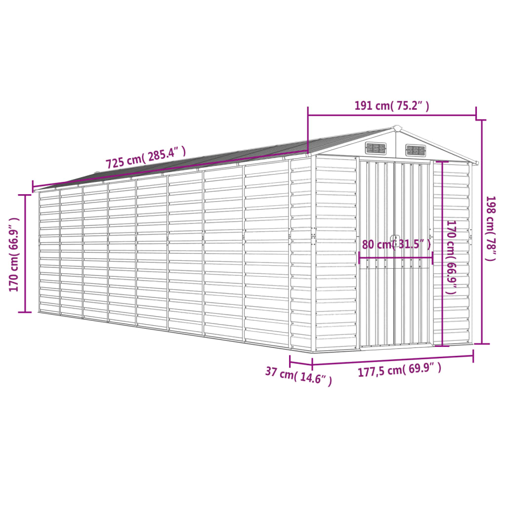 Puutarhavaja vaaleanharmaa 191x725x198 cm galvanoitu teräs