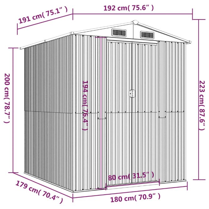 Puutarhavaja vaaleanharmaa 192x191x223 cm galvanoitu teräs