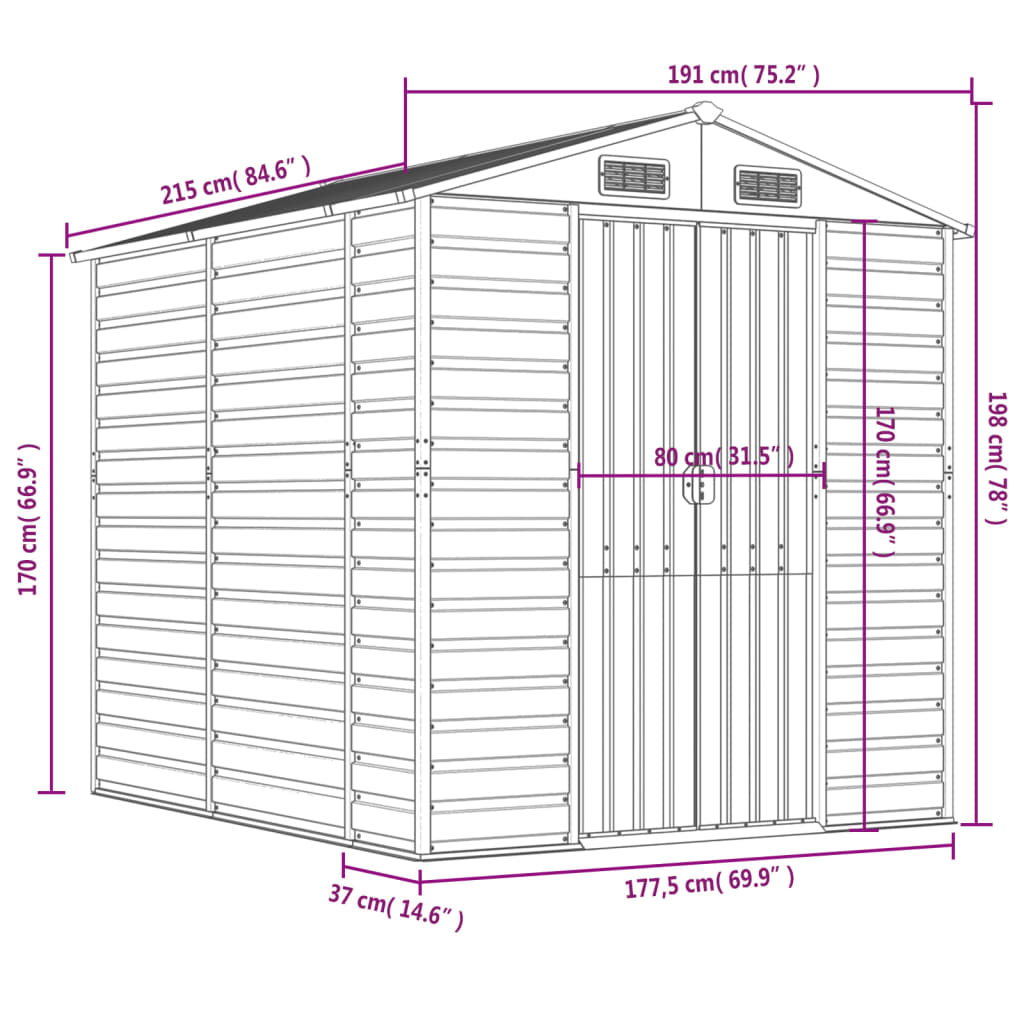 Puutarhavaja vihreä 191x215x198 cm galvanoitu teräs