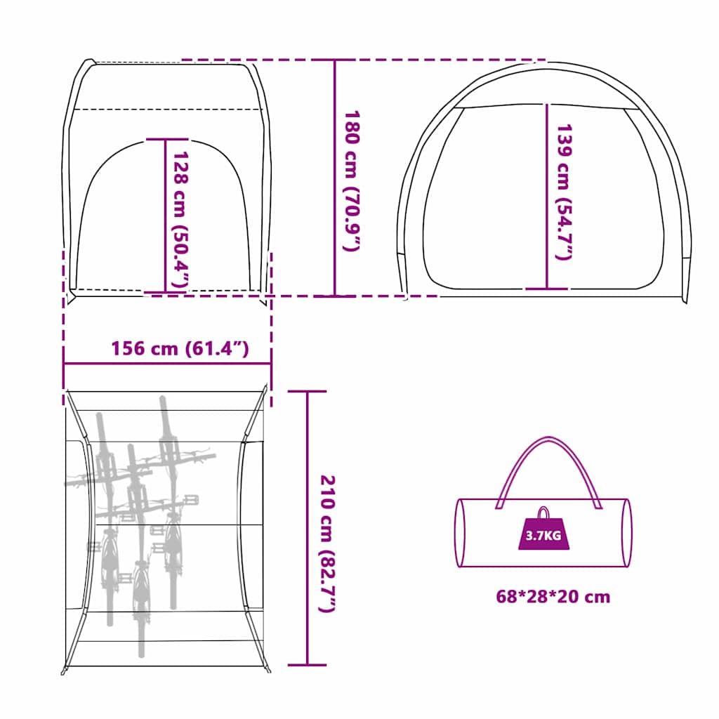 • Käytännön käyttö Tämä teltta on loistava leirintään ja ulkovarastointiin, tarjoten suojan pyörille, varusteille tai muille henkilökohtaisille tavaroille matkojen aikana. Moderni ilme ja yksinkertainen toiminnallisuus tekevät siitä joustavan vaihtoehdon erilaisille ulkoilma-aktiviteeteille.