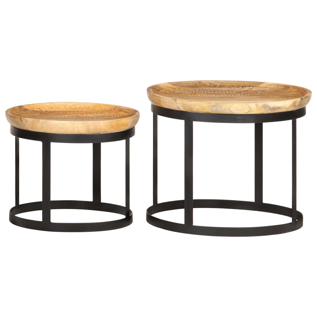 Pyöreät sivupöydät 2 kpl täysi mangopuu ja teräs