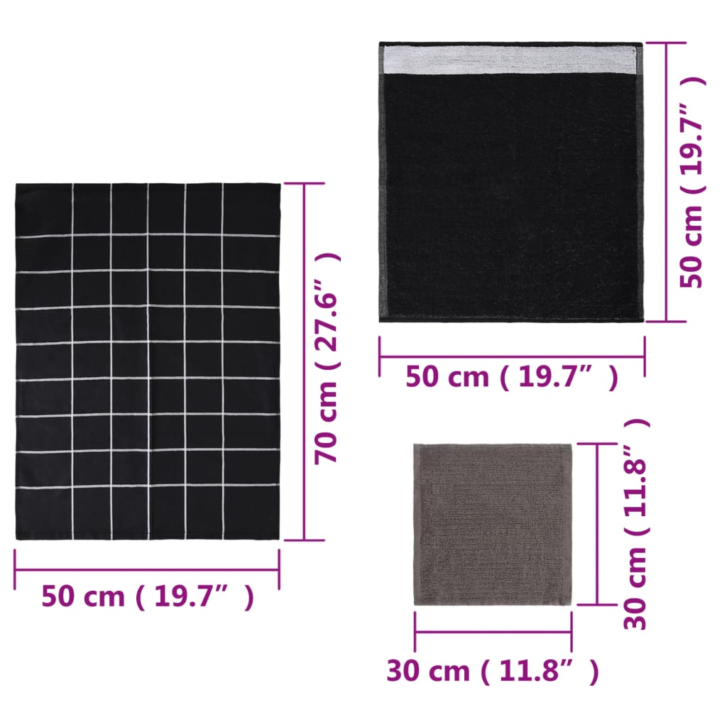 Tämä pyyhesetti sisältää 12 erikokoista pyyheliinaa. Ne ovat todella käytännölliset päivittäiseen siivoukseen, kuivaamiseen, pyyhkimiseen, pölyjen pyyhkimiseen ja moneen muuhun askareeseen.