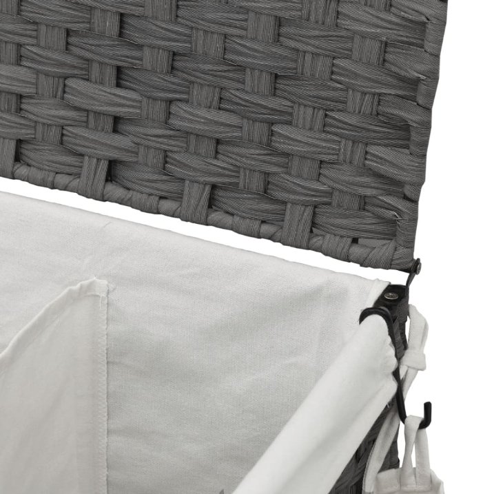 • Käytännöllinen muotoilu: Kansi estää epämiellyttäviä hajuja ja suojaa pyykkiäsi pölyltä. Lisäksi sivussa oleva kahva helpottaa korin kantamista pyykkitupaan.