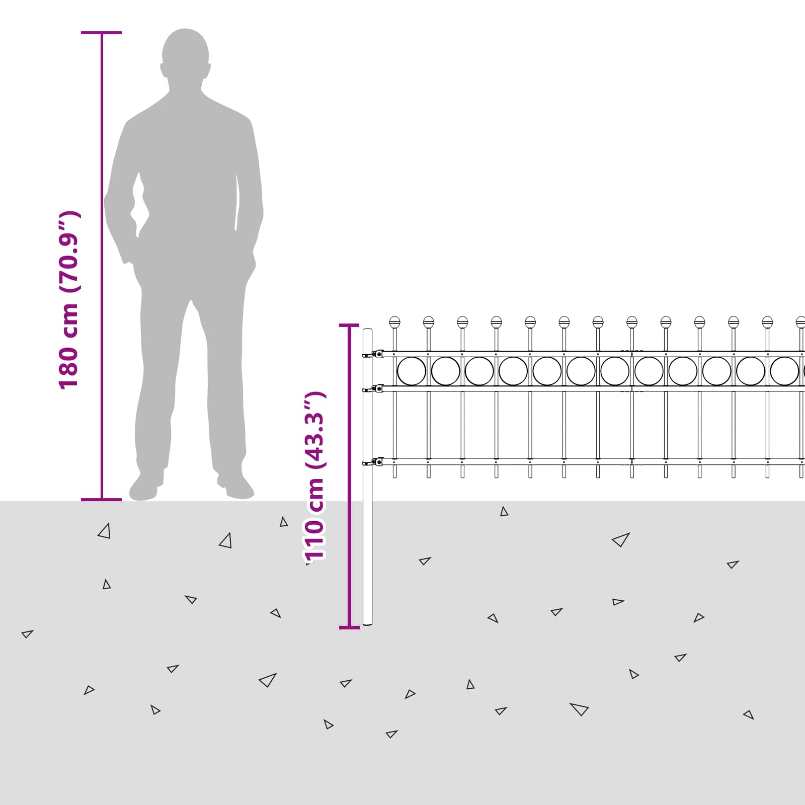 • Jauhemaalattu teräs: Kestävä jauhemaalattu teräs tekee tästä ringin aidasta hyvän vaihtoehdon varmistamaan säilytysolosuhteet turvallisesti, koska se kestää pitkään ulkona. Sen pinnoite on suunniteltu niin, että se tarjoaa puhtaan ja modernin ilmeen, sulautuen vaivattomasti ulkoiseen ympäristöön.