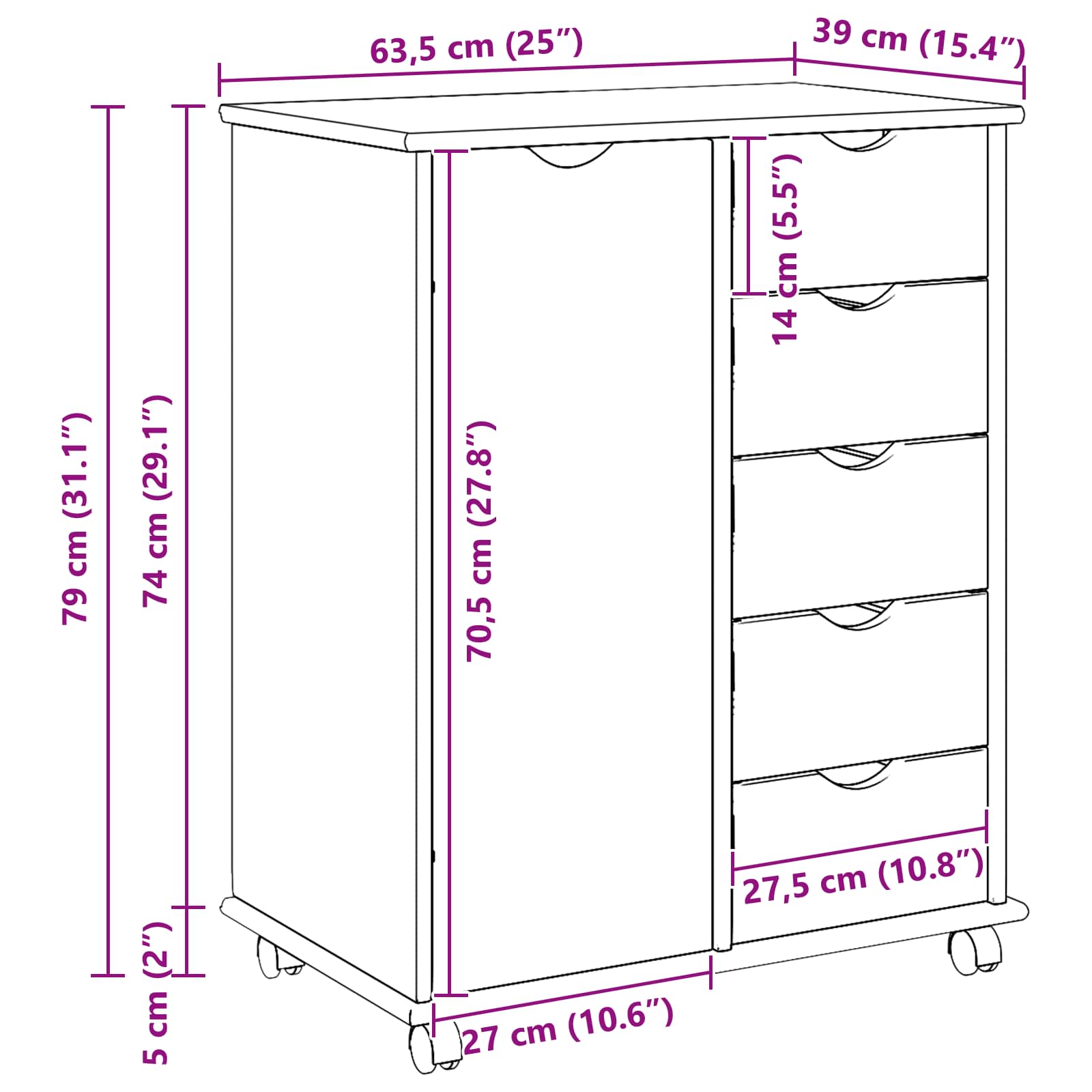 Rullaava kaappi pyörällä Hunajaruskea 63,5 x 39 x 79 cm