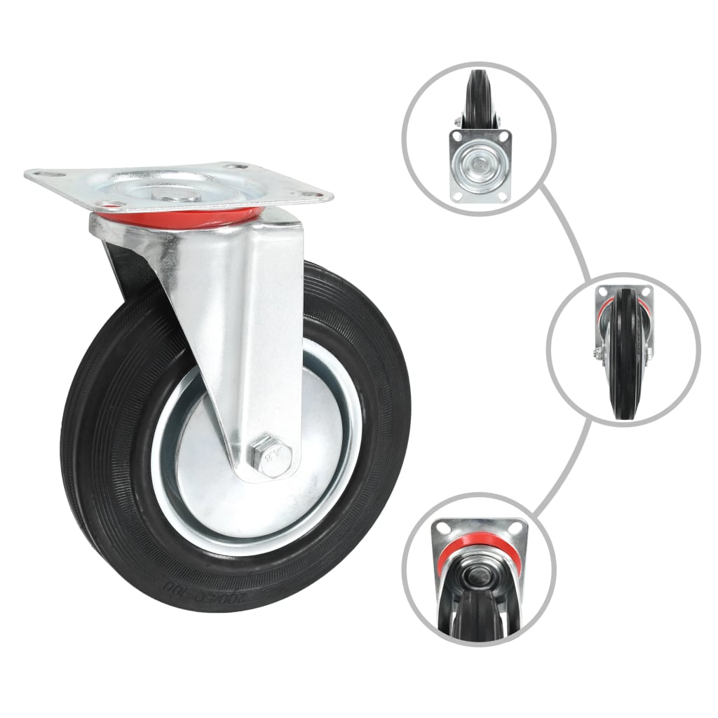 Rullapyörät on valmistettu kumista, joka kestää hyvin iskuja ja tärinää, jonka ansiosta pyörät liikkuvat vaivattomasti ja hiljaa. Niiden pehmeä pinta lisäksi suojaa lattioitasi naarmuuntumiselta. Sinkkipäällystetty rautarunko on ruostumaton ja tuo oman lisänsä rullapyörien vankkuuteen ja kestävyyteen. Kunkin rullapyörän enimmäiskantavuus on 180 kg.