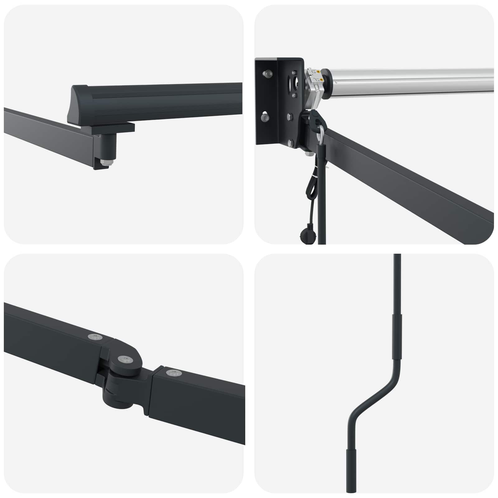 • Toimitus sisältää vain markiisin rungon, voit etsiä verkosta sopivan markiisikankaan asennuksen täydentämiseksi.