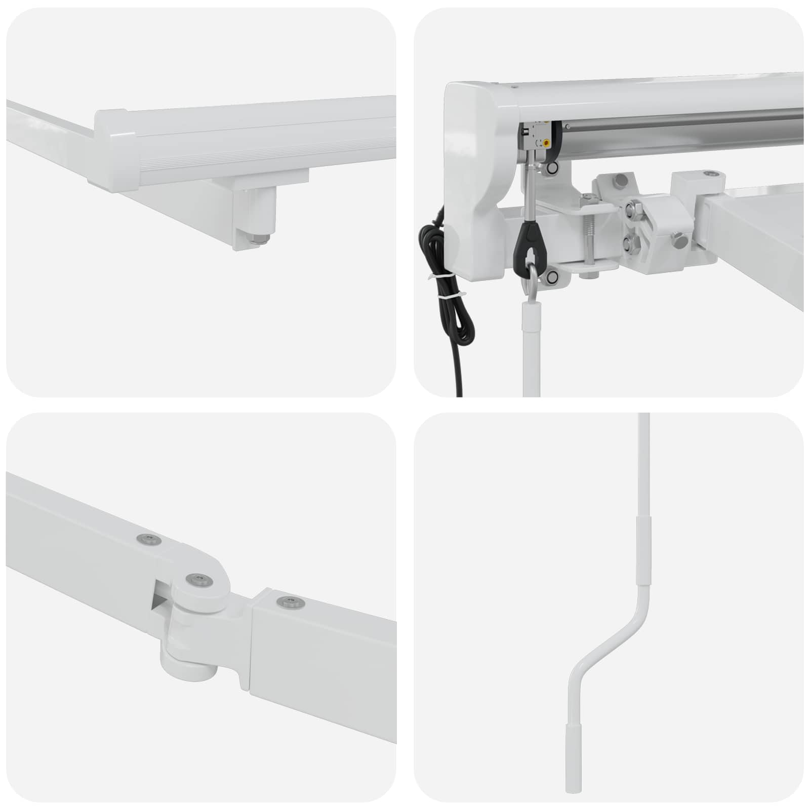• Ominaisuudet: Rungossa on vetäytyvät käsivarret, jotka tekevät käytöstä sujuvaa ja helppoa. Kankaan mekanismi on yksinkertainen, ja mukana tulevat asennustarvikkeet varmistavat vakauden ja turvallisuuden seinäasennuksessa.
