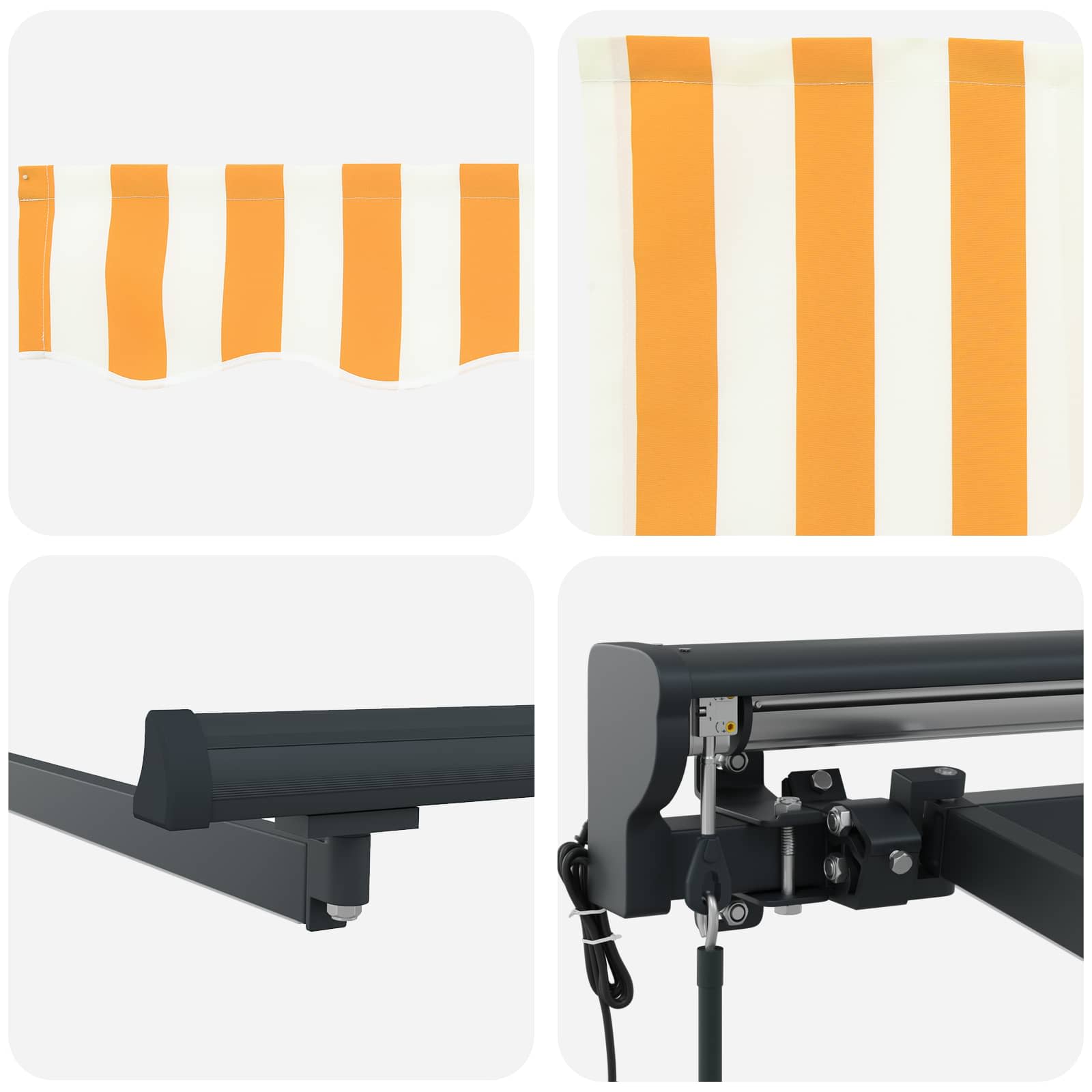 • Kestävä kangas: Polyesterista, jossa on PU-pinnoite, markiisikangas kestää sään haasteita, joten voit nauttia siitä ympäri vuoden. Kangas on kestävä ja säilyttää värinsä ajan kanssa, pitäen ulkotilasi visuaalisesti viehättävinä.