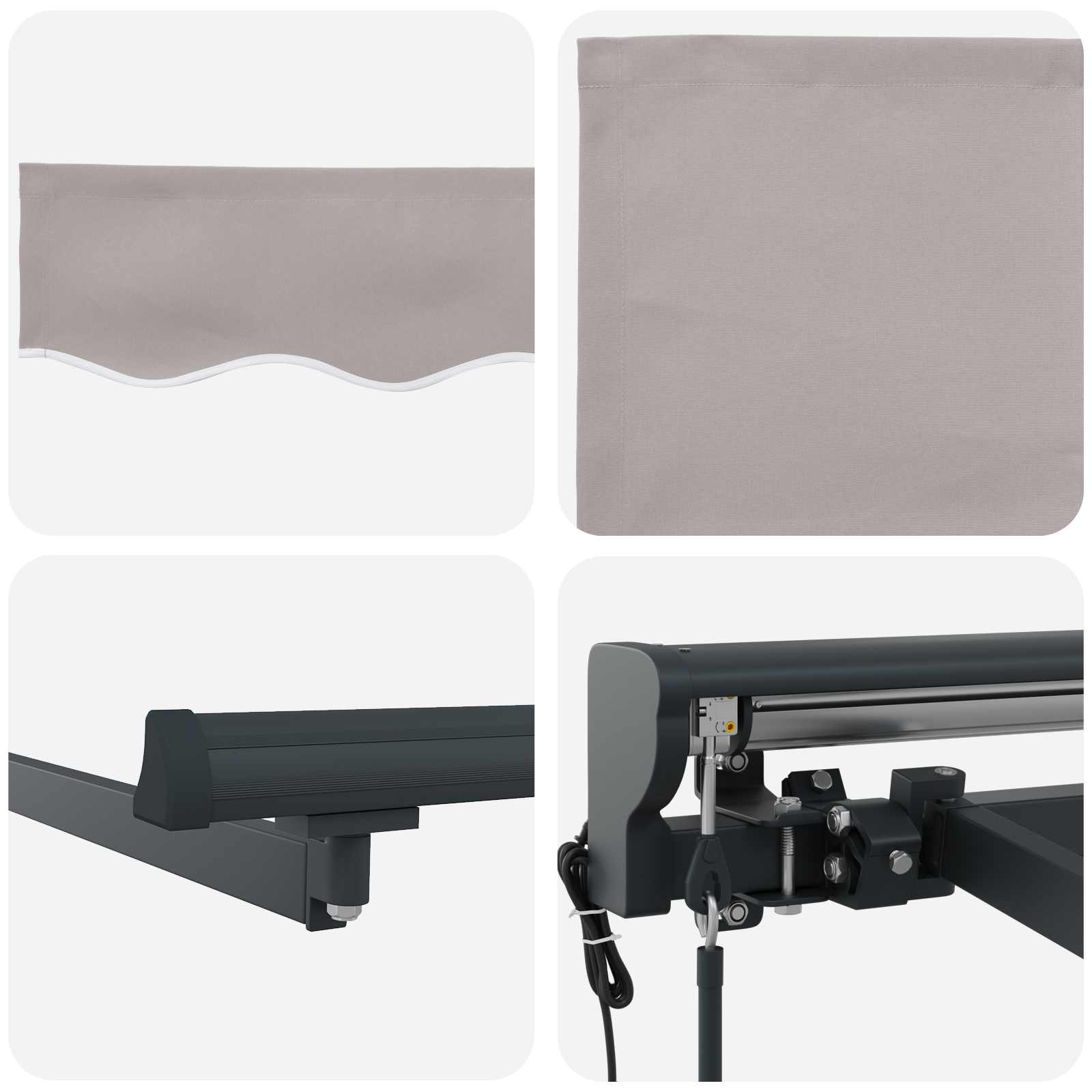 • Kestävät materiaalit: Markiisi on tehty alumiinista ja polyesteristä, jotka tekevät siitä kestävän ja esteettisesti mukavan ulkotiloihin. Alumiinirakenne tuo vakautta ja säänkestävyyttä, kun taas polyesteri tarjoaa huipputason UV-suojaa. Tämä yhdistelmä takaa, että markiisi toimii kehnosti kaikissa vuodenaikoissa, joten se on ihanteellinen ympäri vuoden.