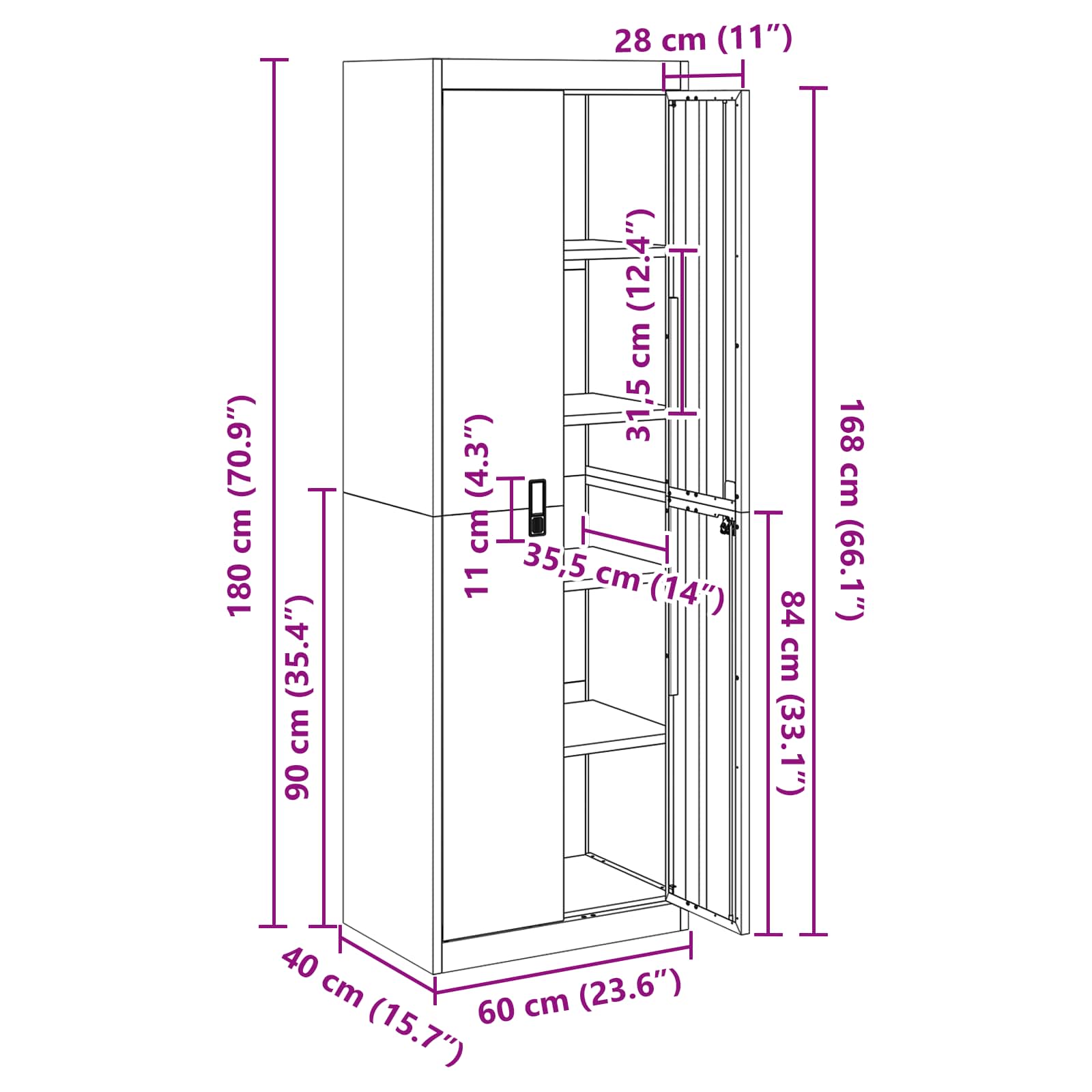 • Yleiset mitat: 60 x 40 x 180 cm (P x L x K)