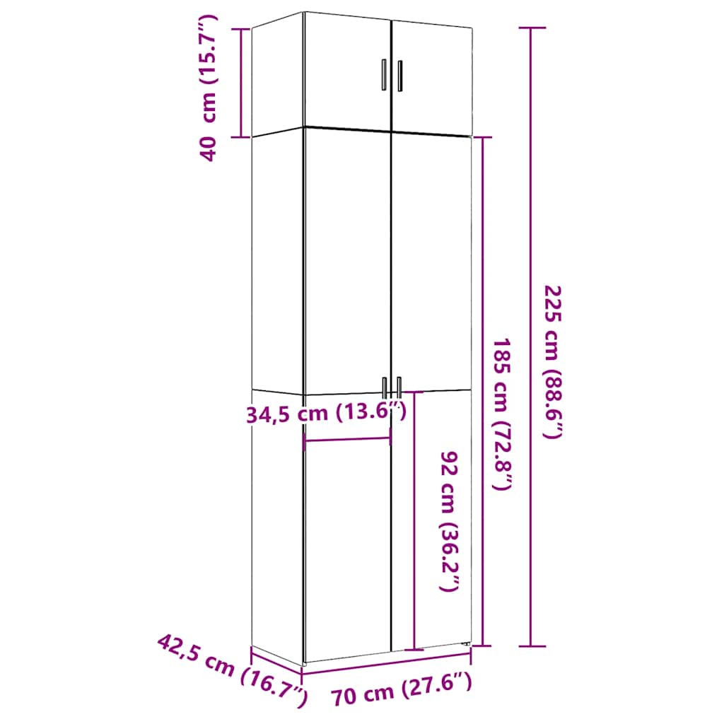 Säilytyskaappi harmaa Sonoma 70×42,5×225 cm tekninen puu