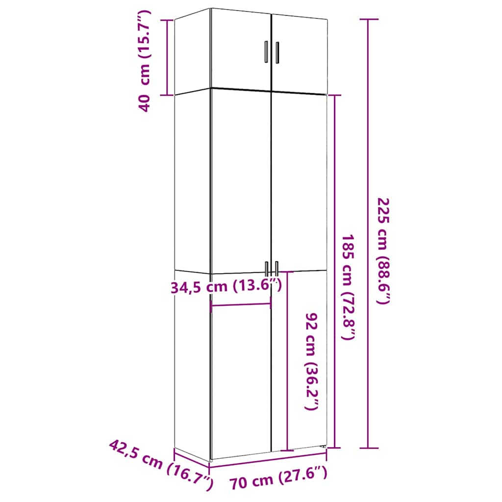 Säilytyskaappi Sonoma-tammi 70×42,5×225 cm tekninen puu
