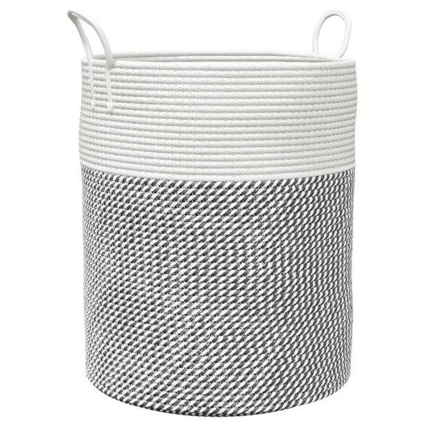 Säilytyskori harmaa ja valkoinen Ø38×46 cm puuvilla