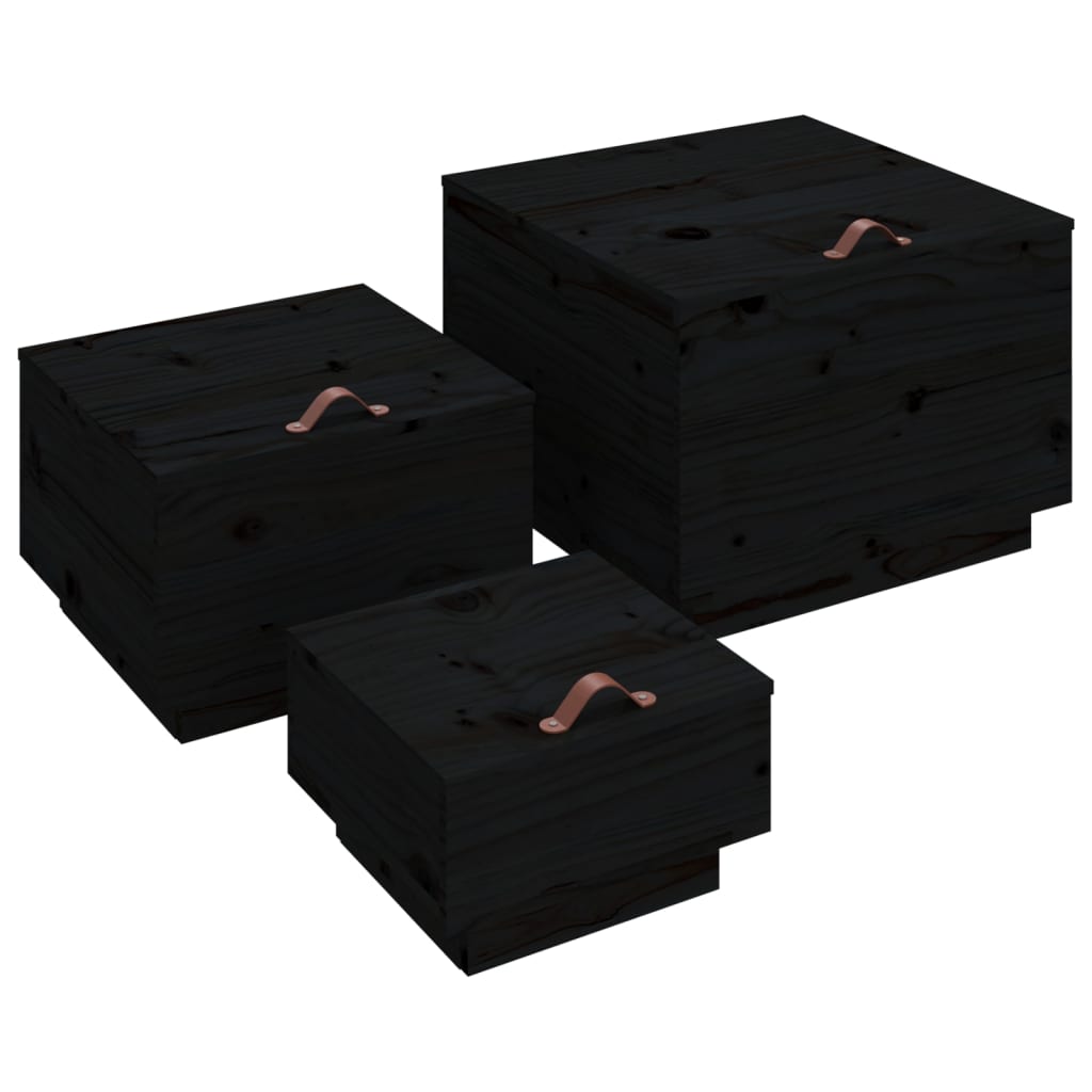 Säilytyslaatikot kannella 3 kpl musta täysi mänty