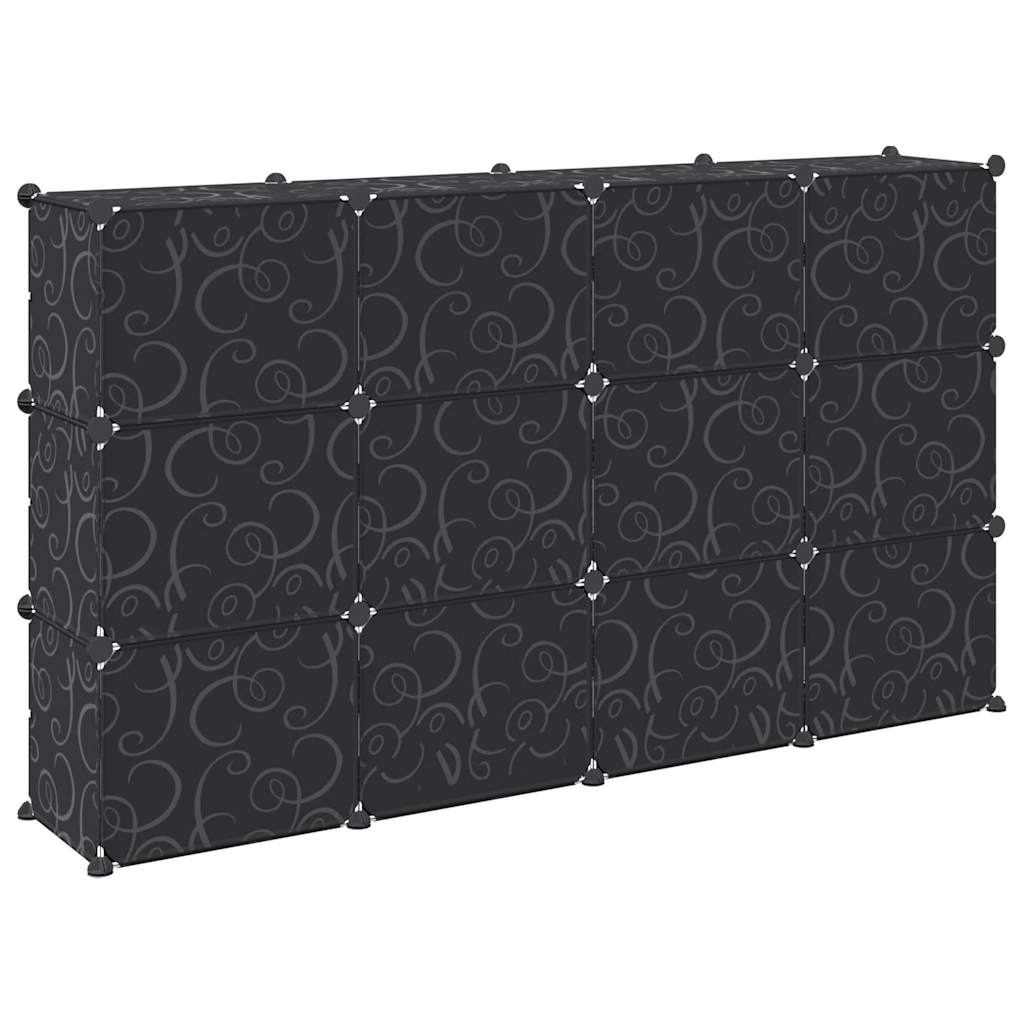 Säilytyslokero 12 kuutiolla ja ovilla musta PP
