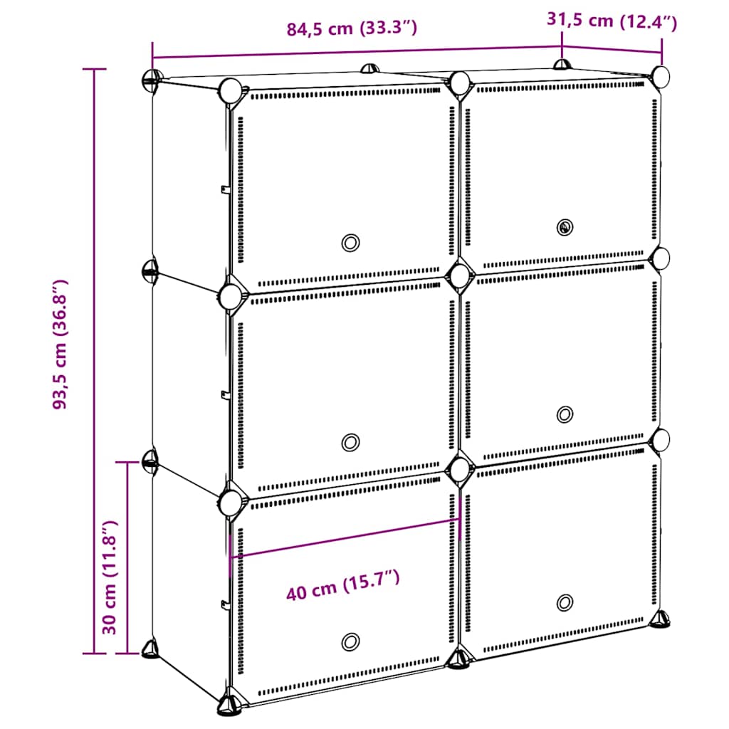 Säilytyslokero 6 kuutiolla ja ovilla musta PP