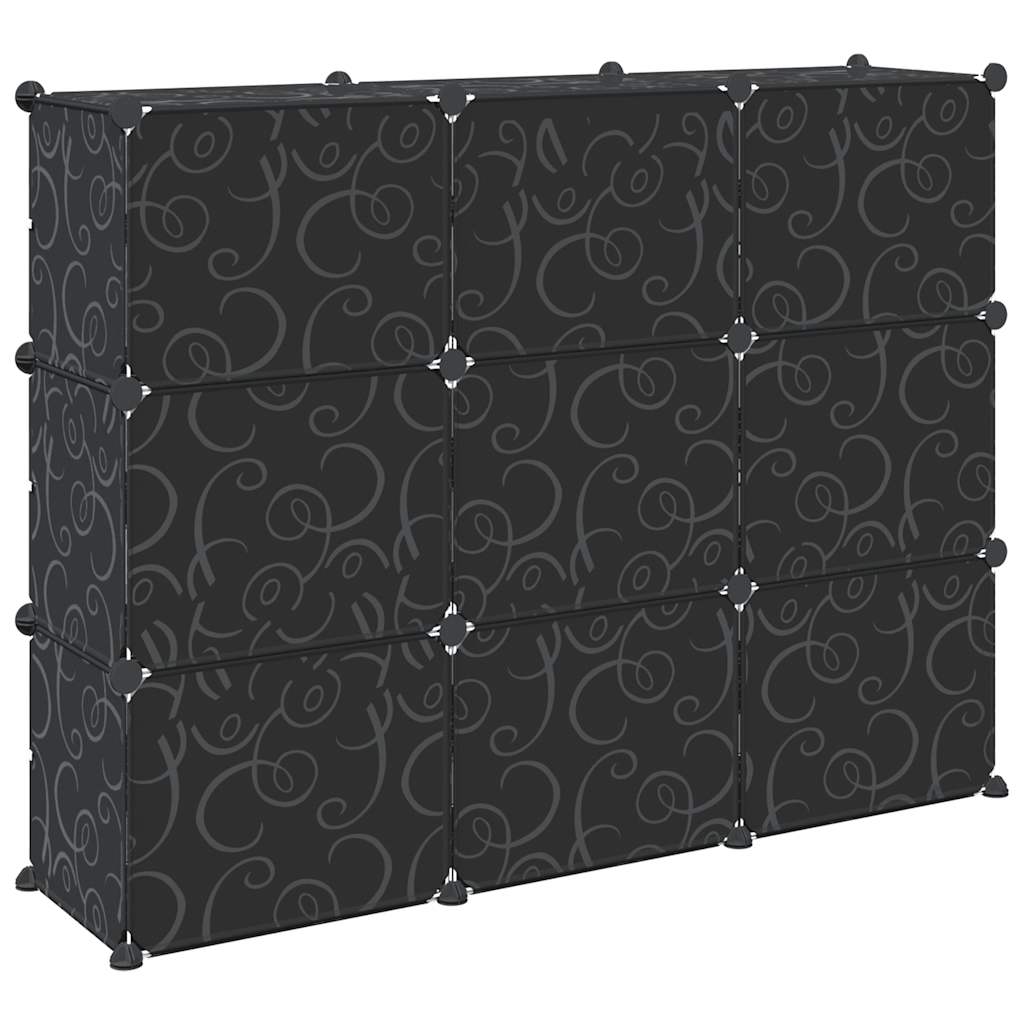 Säilytyslokero 9 kuutiolla ja ovilla musta PP