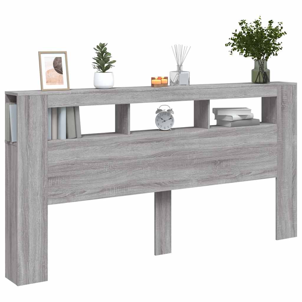 Sängynpääty LED-valoilla harmaa Sonoma 200×18,5×103,5 cm puu
