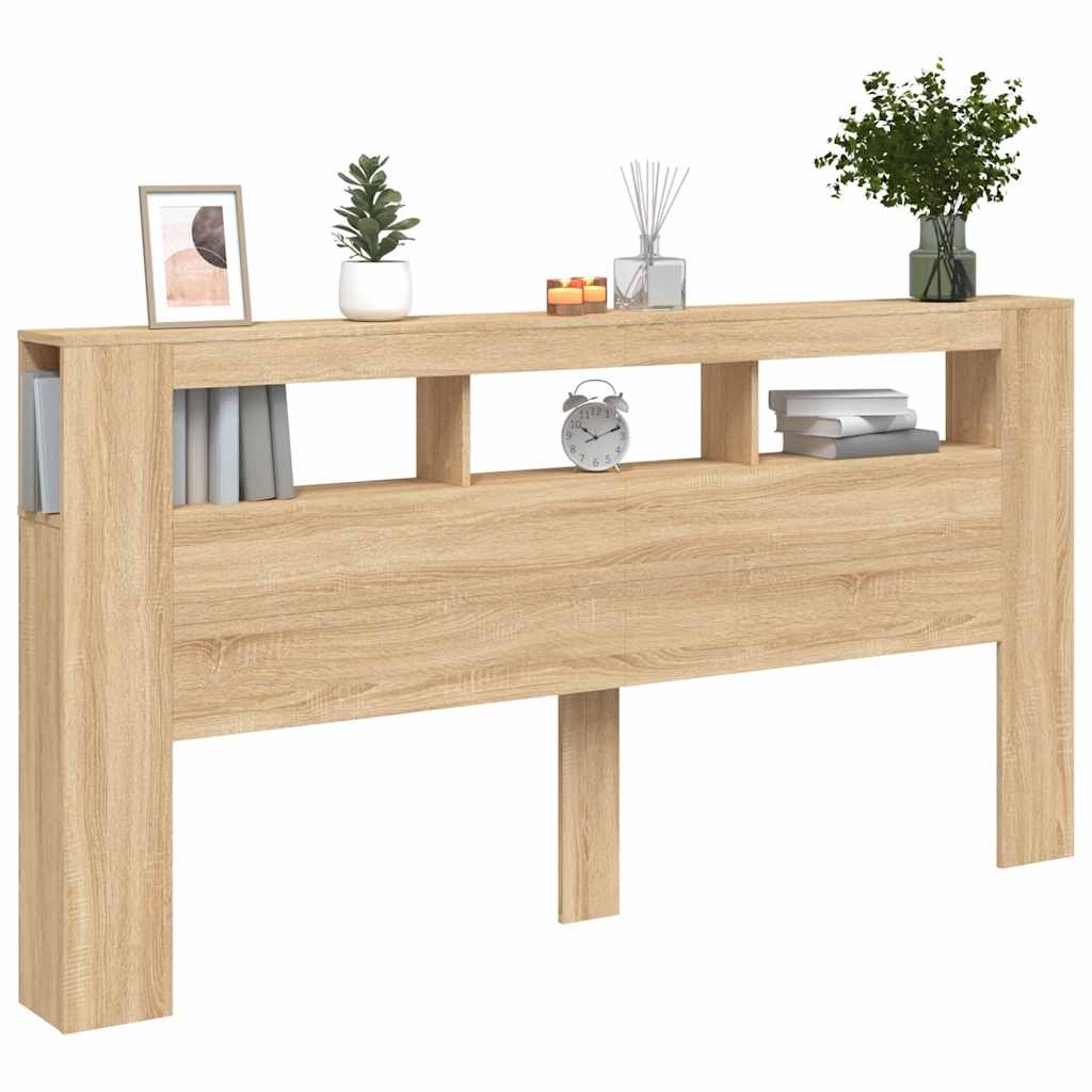 Sängynpääty LED-valoilla Sonoma-tammi 200×18,5×103,5 cm puu