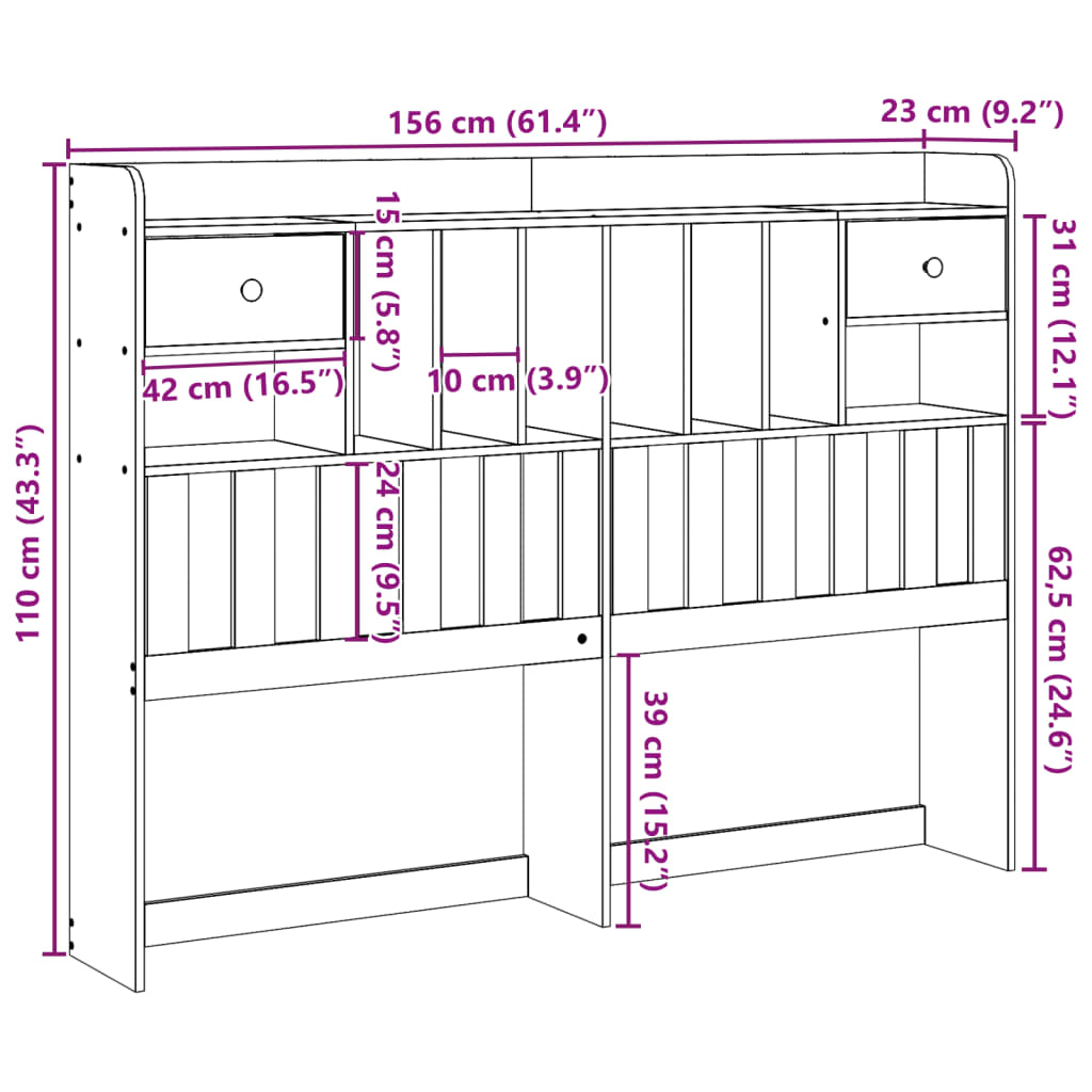 • Runsaasti säilytystilaa: Tässä tyylikkäässä sängynpäädyssä on kuusi kätevää lokeroa ja kaksi laatikkoa, jotka tarjoavat runsaasti säilytystilaa, jotta kaikki yöllä tarvittavat tavarat ovat helposti ulottuvillasi.
