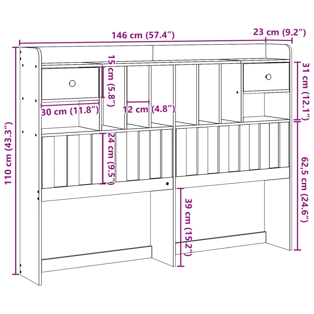Sängynpääty säilytystilalla valkoinen 140 cm täysi mänty