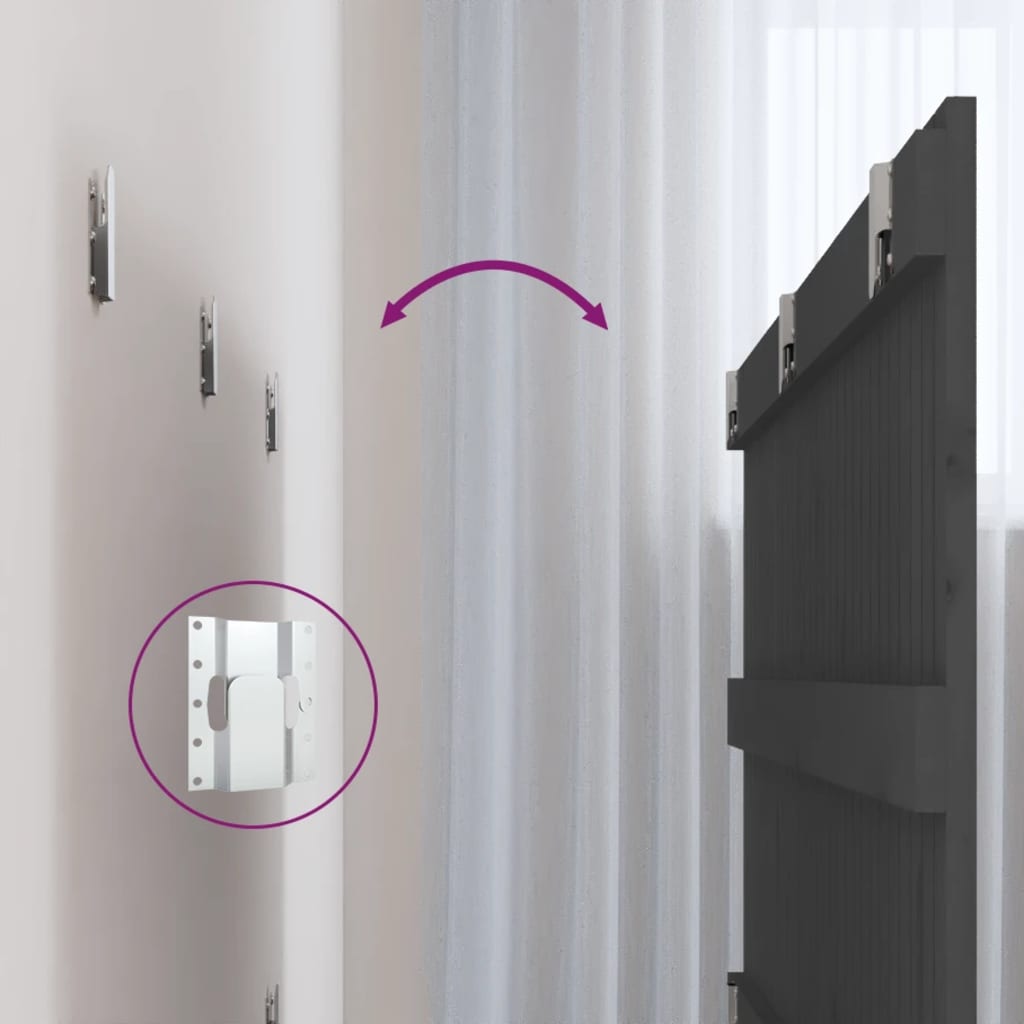 Sängynpääty seinälle harmaa 185x3x60 cm täysi mänty