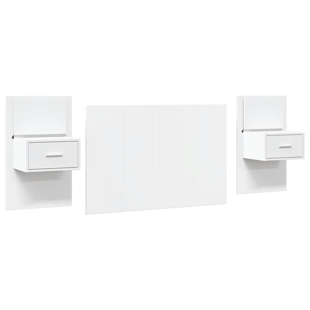 Sängynpääty yöpöydillä valkoinen 120 cm tekninen puu