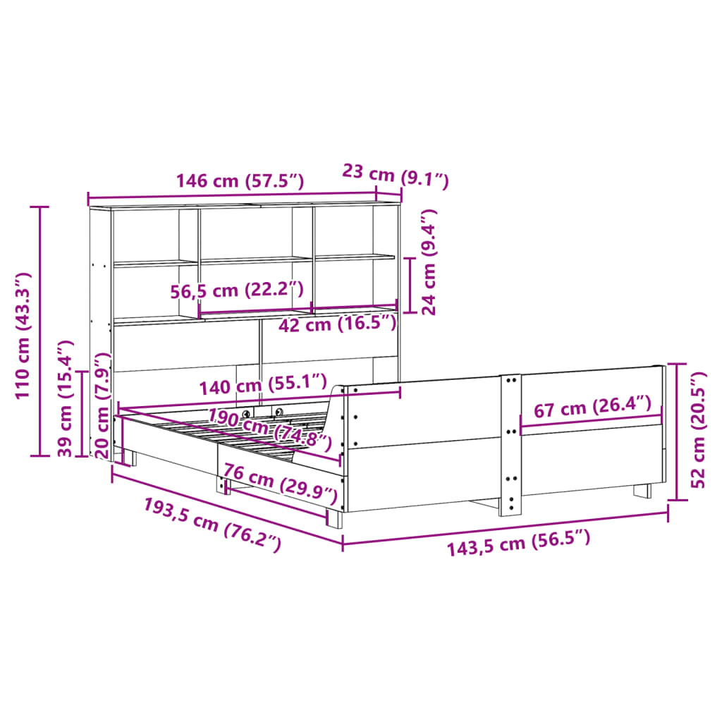 Sängynrunko ilman patjaa 140×190 cm täysi mänty