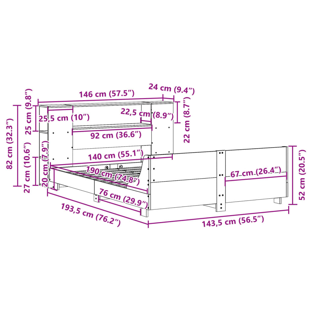 Sängynrunko ilman patjaa 140×190 cm täysi mänty