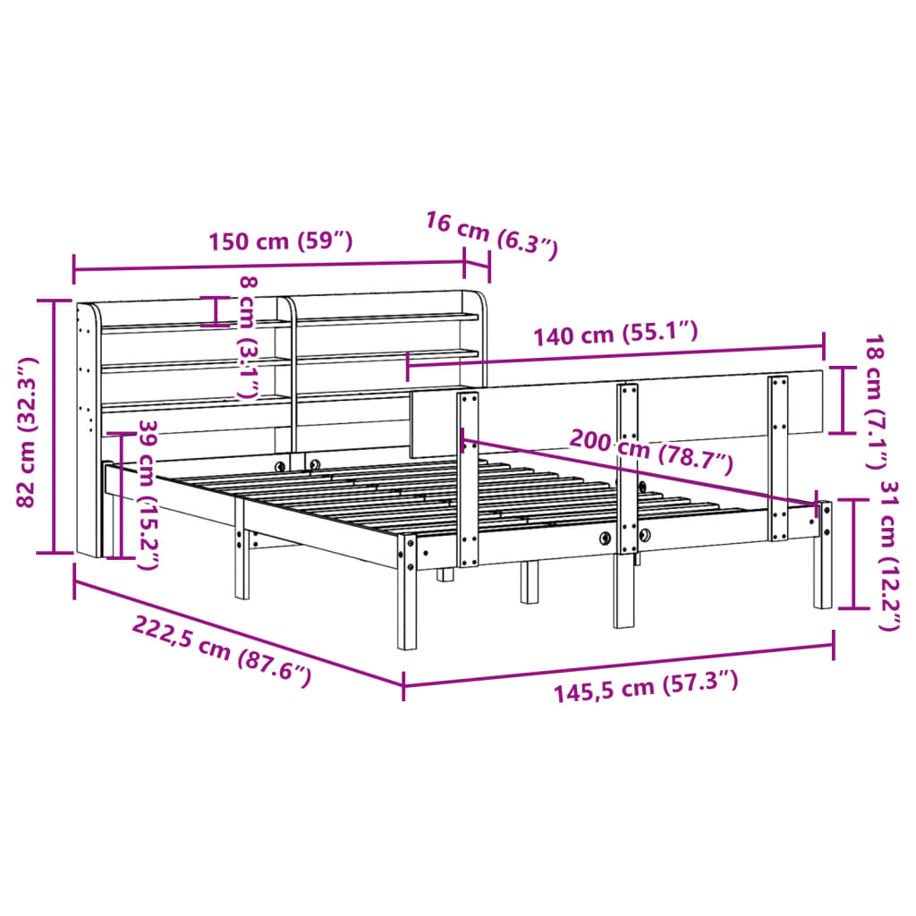 Sängynrunko ilman patjaa 140×200 cm täysi mänty