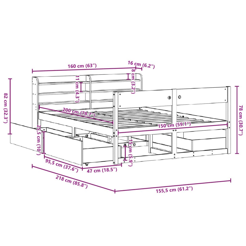 • Sopiva patjan koko: 150 x 200 cm (L x P) (patja ei mukana)
