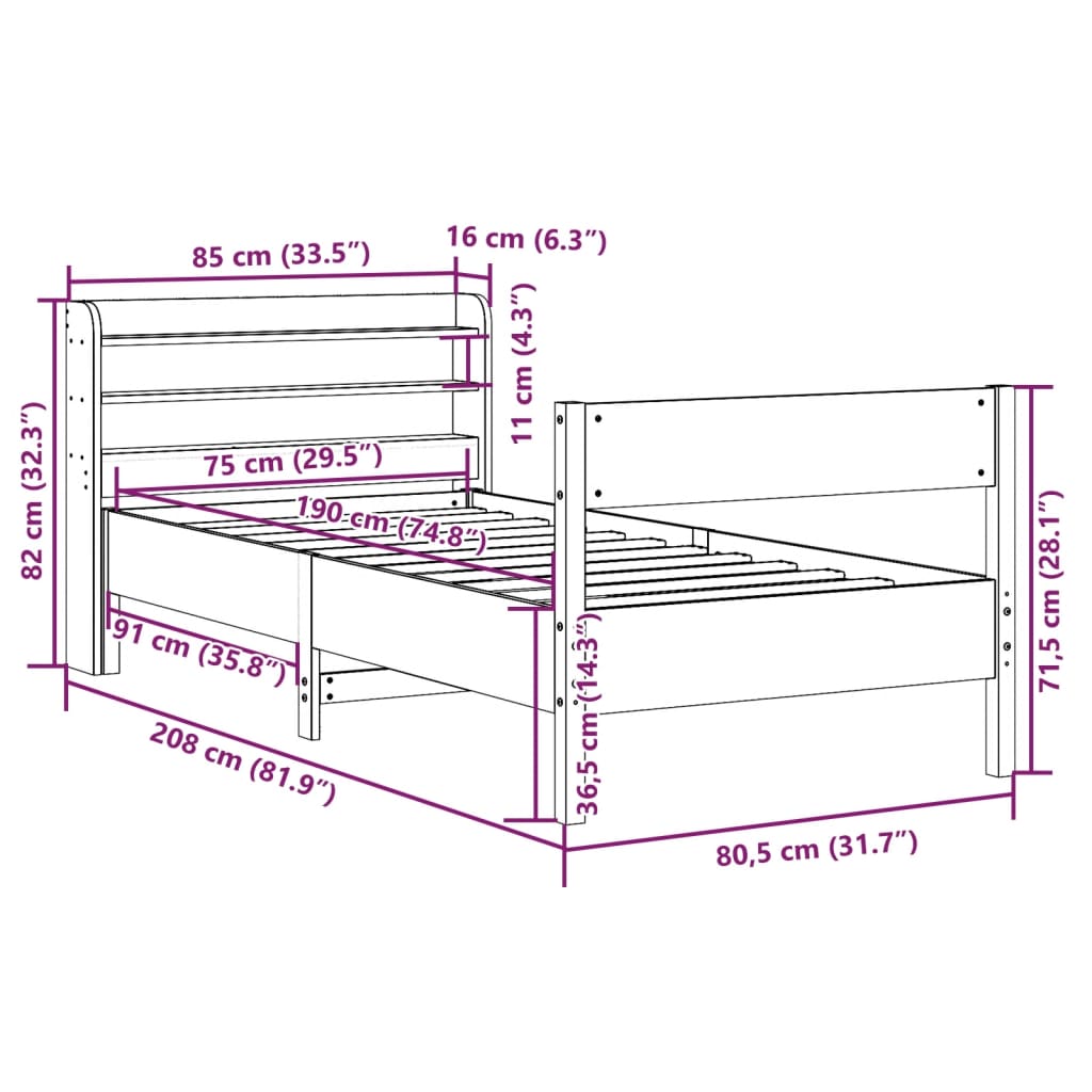 Sängynrunko ilman patjaa 75×190 cm täysi mänty