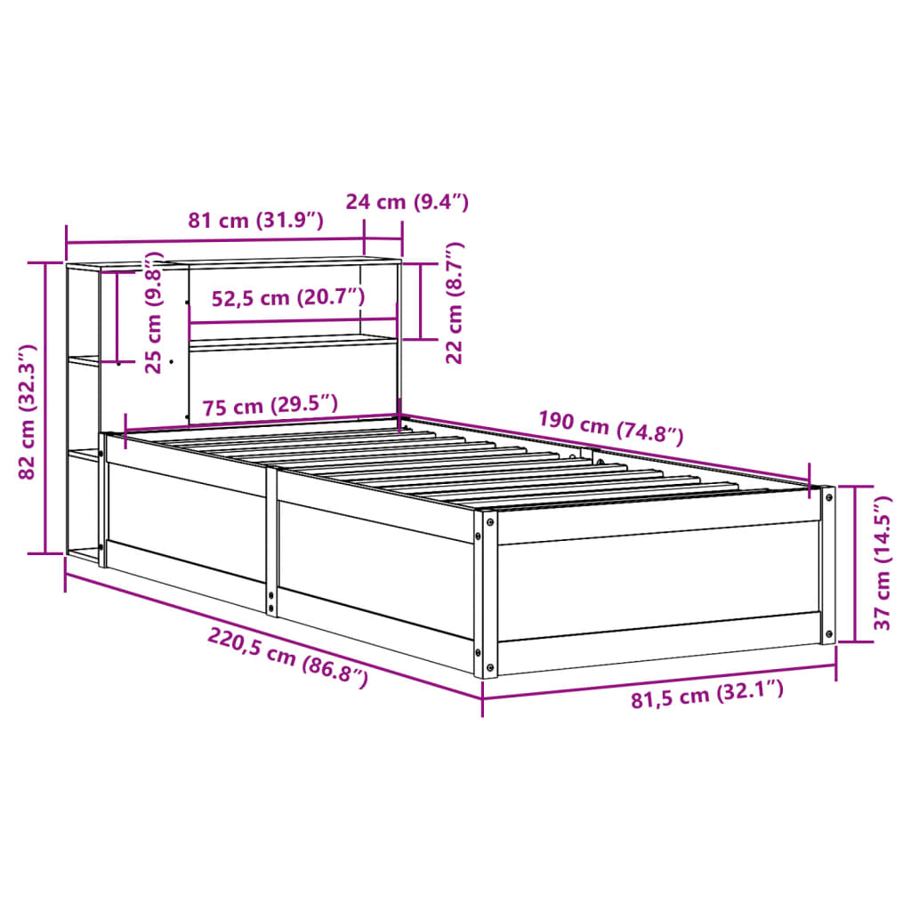 Sängynrunko ilman patjaa 75×190 cm täysi mänty