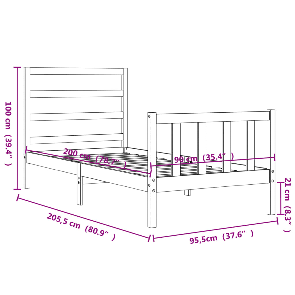Sängynrunko ilman patjaa 90×200 cm täysi mänty