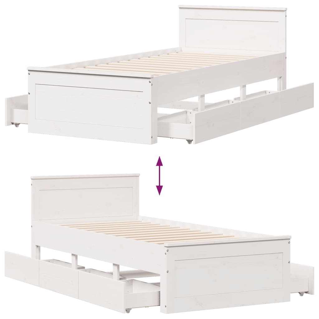 Sängynrunko ilman patjaa päädyllä valk. 75×190 cm täysi mänty