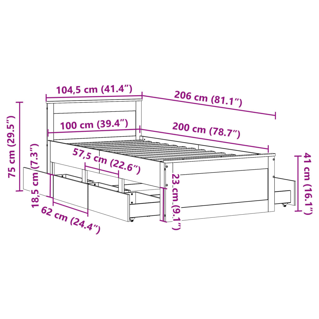 Sängynrunko ilman patjaa päätylevyllä 100×200 cm täysi mänty