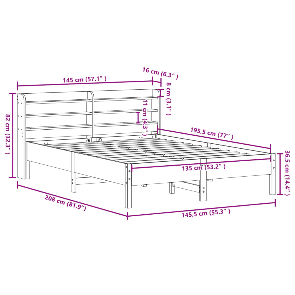 Sängynrunko ilman patjaa vahanruskea 135×190 cm täysi mänty