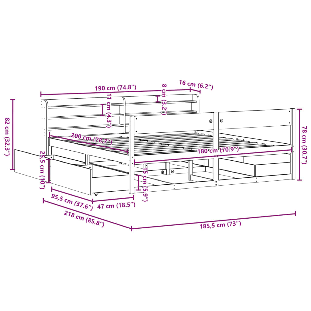 • Sopiva patjan koko: 180 x 200 cm (L x P) (patja ei mukana)