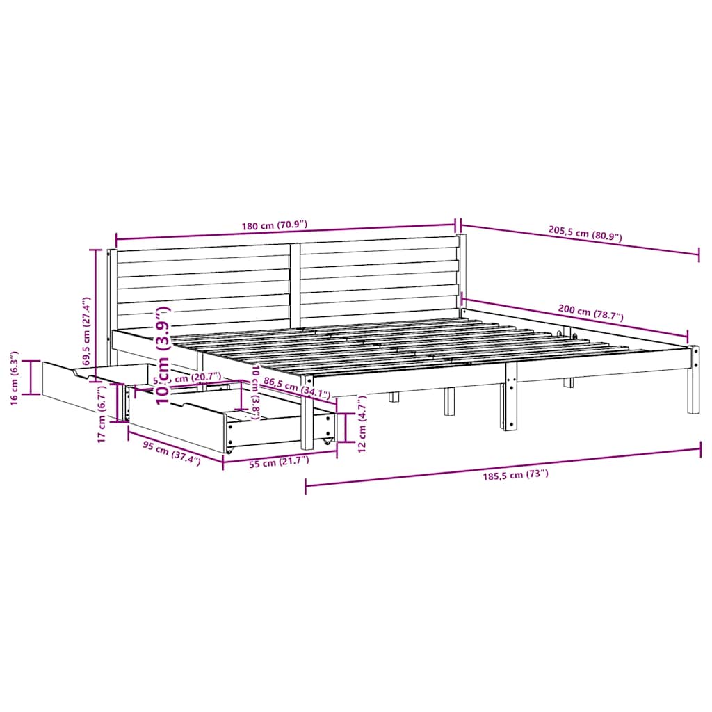 • Sopiva patjan koko: 180 x 200 cm (L x P) (patja ei mukana)
