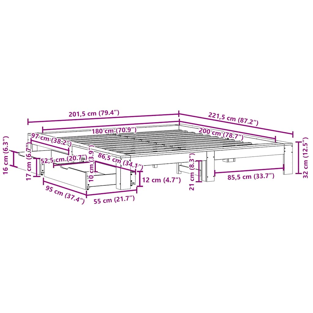 • Hyödynnä kaikki käytettävissä oleva tila: Tämä sängynrunko sisältää kaksi vuodelaatikkoa sängyn alla, jotka tarjoavat säilytystilaa vuodevaatteille, eri vuodenaikoina käytettäville vaatteille ja leluille.